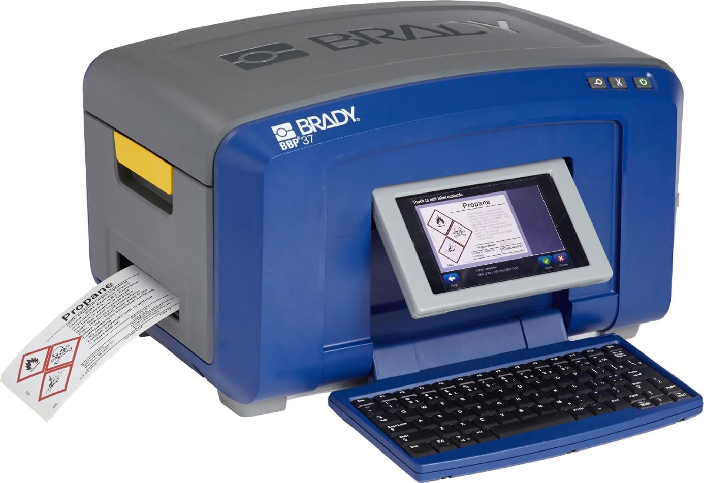 Hochleistungsfähige Schilder- und Etikettendrucker für gut sichtbare Sicherheits-, Produkt-, Regal-, Geräte- und Gebäudekennzeichnungen. Materialien und Farbbänder in verschiedenen Farben erhältlich, auch 2- und 4-farbige Farbbänder für den Mehrfarbdruck. Der BBP37 beinhaltet eine zusätzliche Plot-Funktion für das genaue Ausschneiden von Rändern von Schildern, Zahlen, Buchstaben, Symbolen usw.. Diese zusätzliche Plot-Funktion ist für Materialien mit 101 mm Breite möglich und daher besonders für die LOTO- und Industrie-Kennzeichnungen. Mit dem BBP85 lassen sich große Banner und Schilder in einer Breite von 254 mm bedrucken (ohne Plot-Funktion).